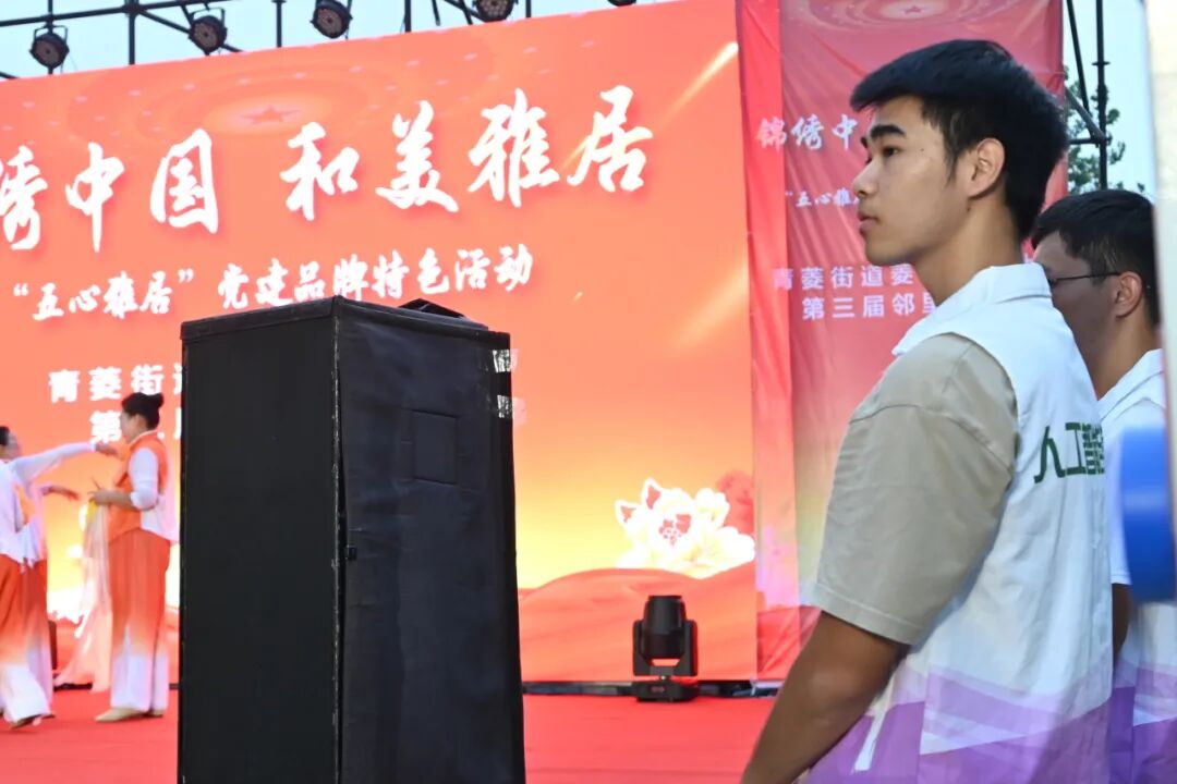 在活动过程中,志愿者们的身影活跃在会场各处。他们的工作具体而细致:根据现场人流情况,及时帮忙摆放和调整座椅,方便居民就座;他们分散在会场周边,耐心引导观众,确保活动通道畅通、秩序井然;当有居民对活动环节或社区事务提出咨询时,志愿者们无法直接解答的,便积极协助联络在场的社区工作人员,起到了良好的沟通桥梁作用。整个服务过程中,志愿者们始终保持着认真负责的态度和礼貌热情的精神风貌。