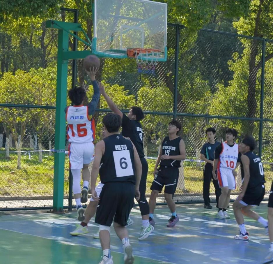 人工智能学院的球员们凭借默契的团队协作和顽强的拼搏精神,在第一节奋勇争先。进攻时,他们巧妙跑位、果断出手,篮球在空中划出一道道优美的弧线,精准落入篮筐;防守时,他们身姿矫健、严密布防,用坚定的眼神和敏捷的动作筑起坚固防线,一次次成功拦截对手的进攻。 兄弟学院的球员们也毫不示弱,凭借精湛的球技和灵活的战术展开反击,双方比分交替上升,赛场气氛紧张而热烈。后三节中,继教学院学子不甘落后,发起猛烈的进攻,每一次精彩的攻防转换,都彰显着球员们对篮球运动的热爱与执着;每一滴挥洒的汗水,都见证着他们的青春与活力。