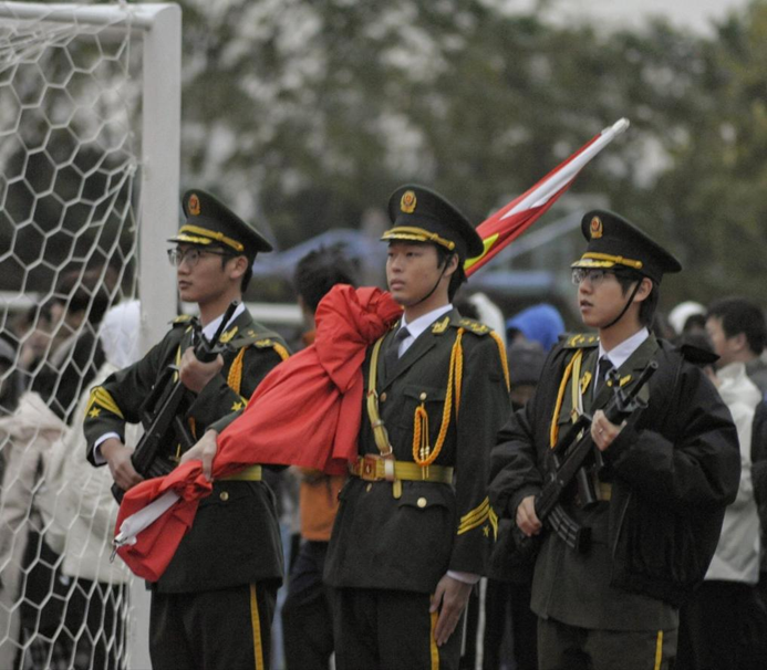 图为国旗班同学严阵以待,展现良好风貌