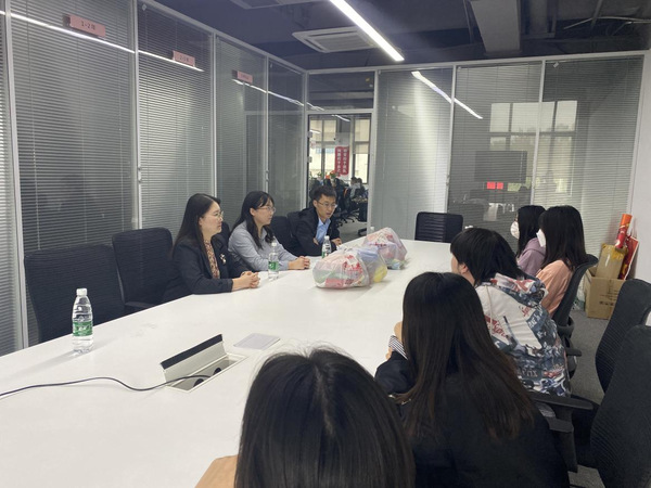 2021年10月13日下午,学院党总支副书记海鹏老师带领2022届毕业生辅导员一行抵达湖北纳杰人力资源有限公司,与在这里实习的学生进行了座谈,仔细听取同学们的实习收获和体会、工作与生活中的问题与困惑。