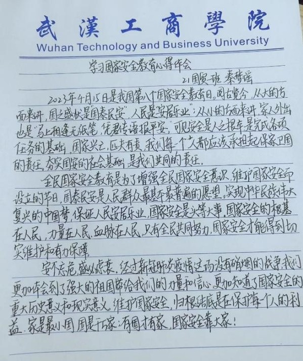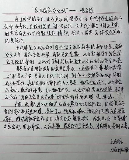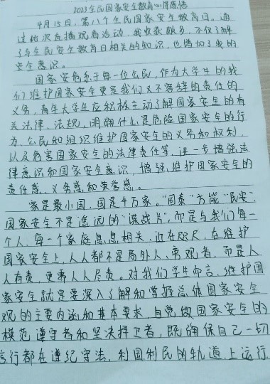 在如今信息化丰富的时代,大家不仅要掌握安全知识更要明辨是非,每多一个有良好安全知识掌握的人,违法犯罪的事便少一分。所以在自身了解国家安全教育的同时也不要忘记自己的家人、朋友、同胞。相信大家在新时代科技带来更加异彩纷呈的世界里能够重视安全问题、在知识的庇护下面对陷阱能够正确分辨,做一个维护国家安全的好公民,站在讲政治的高度,迅速适应中央新要求、达到新标准,在各自岗位上守土有责、守土尽责,为党的长期执政、国家长治久安、人民安居乐业夯实基础。
