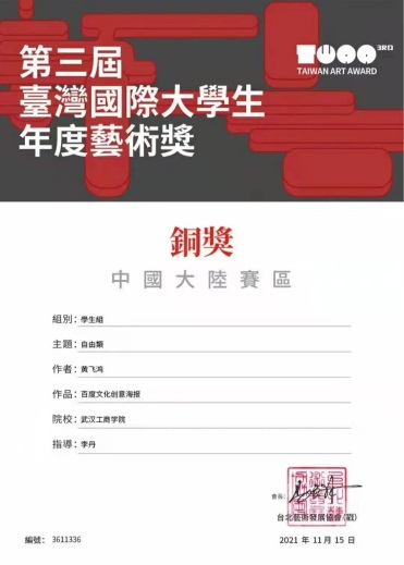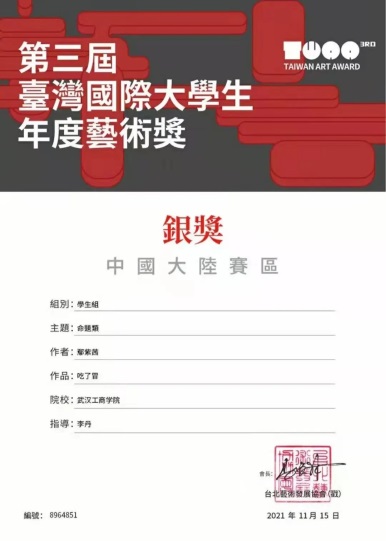 (通讯员:徐亚玲)2021年12月18日,米乐mile官方网站应用技术学院创新实验班的学生喜获佳绩。在第三届台湾国际大学生年度艺术大赛中获得2枚银奖和7枚铜奖。第三届台湾国际大学生年度艺术大奖赛主要面对中国台湾、中国大陆、香港澳门及新加坡地区的国际性大学生设计大赛,旨在推动中华传统文化的创新发展。