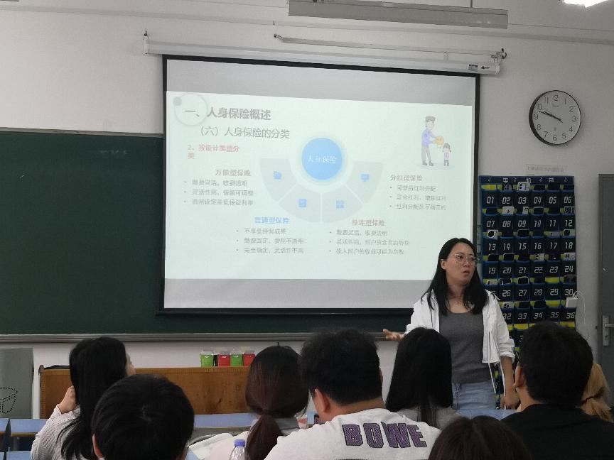 图1-刘俊丽老师正在开展《保险学》示范课