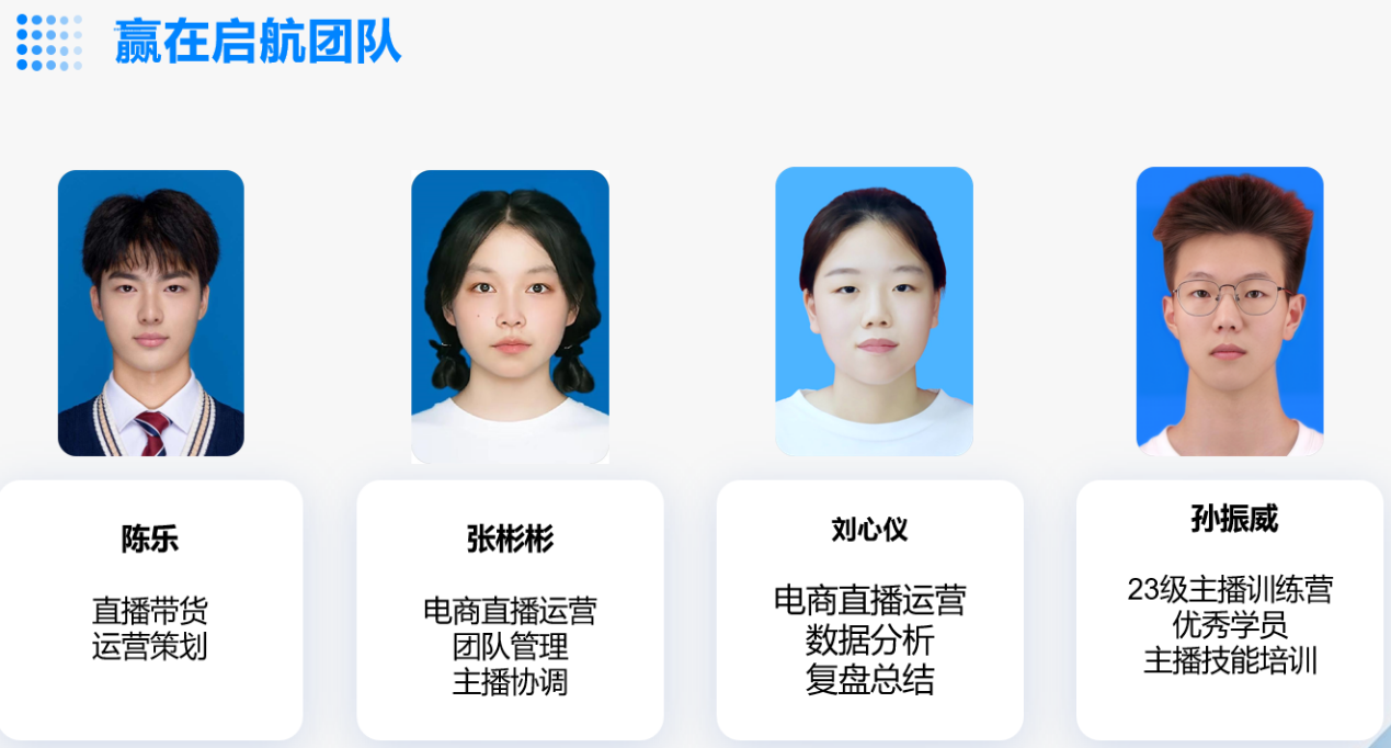 四位队员均来自我院22级电子商务专业,他们因为对二次元的热爱而走到一起,并把热爱当共同的事业,并在2023年5月注册了公司,选择了创业,经过一年的努力,已经有了自己的团队,他们是同学、是战友也是同事。