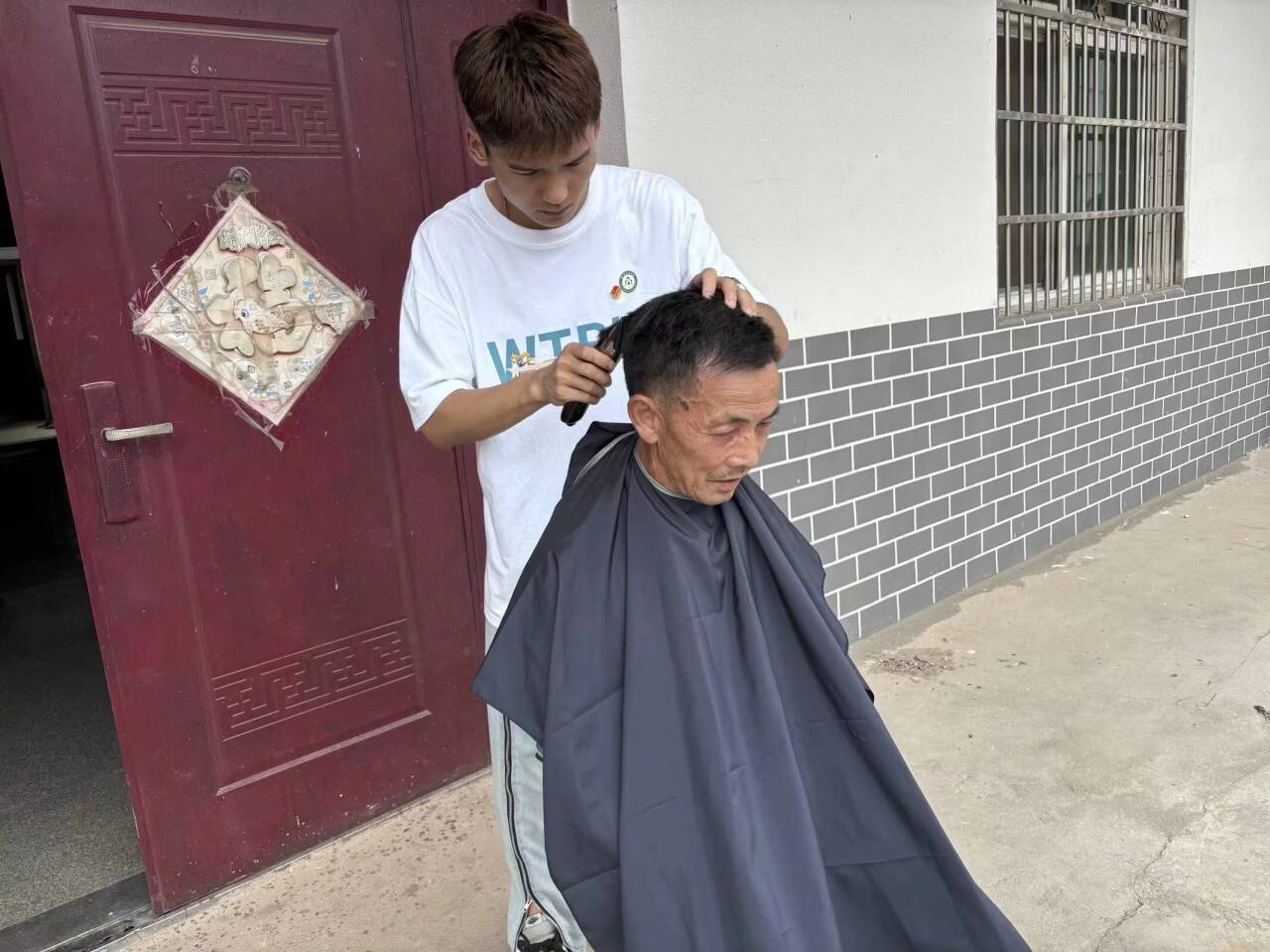 随着理发工具的轻柔运作,志愿者们化身为“爱心理发师”,为山村的老人们精心修剪着发型。他们耐心细致,与老人亲切交谈,询问他们的需求和喜好,力求让每一次修剪都能让老人满意。老人们坐在凳子上,脸上洋溢着幸福的笑容,仿佛回到了年轻时的时光。理发间,不仅有剪刀的咔嚓声,更有心与心的交流,温情在空气中流淌。