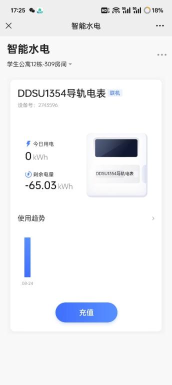 5.点击右上角三个点,可以在“我的房间”中添加房间更换房间缴费,也可以在“充值记录”了吗查看充值记录。