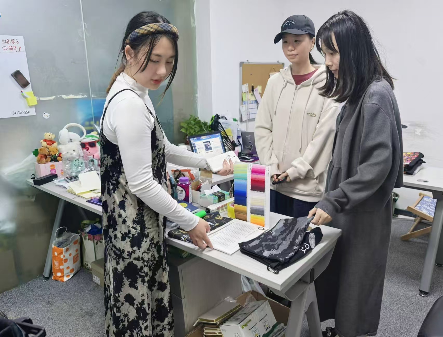 11月13日,陆薇薇与李娟老师首先探望了刘意杨同学。刘同学现就职于一家外贸企业,担任跟单员一职。他的主要工作是在平台上接收国外客户的订单,了解客户需求后,在国内寻找合适的工厂进行产品制作。刘同学需要对产品的做工、材料等方面有深入的了解,以确保产品质量符合客户要求。在客户确认样品后,他会负责安排量产,并跟进产品的寄送流程,确保产品能够顺利寄到国外进行售卖。
