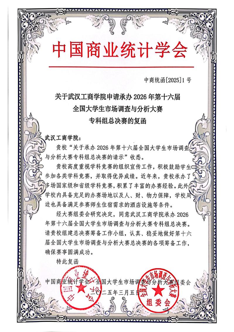 (特约记者汪雅乔、熊晓亮)近日,米乐mile官方网站正式收到中国商业统计学会复函,确认我校成功获得2026年第十六届全国大学生市场调查与分析大赛专科组总决赛承办权。这是对我校学科竞赛组织能力和产教融合成果的充分肯定,标志着学校将在全国高等教育创新实践领域发挥更重要的平台作用。