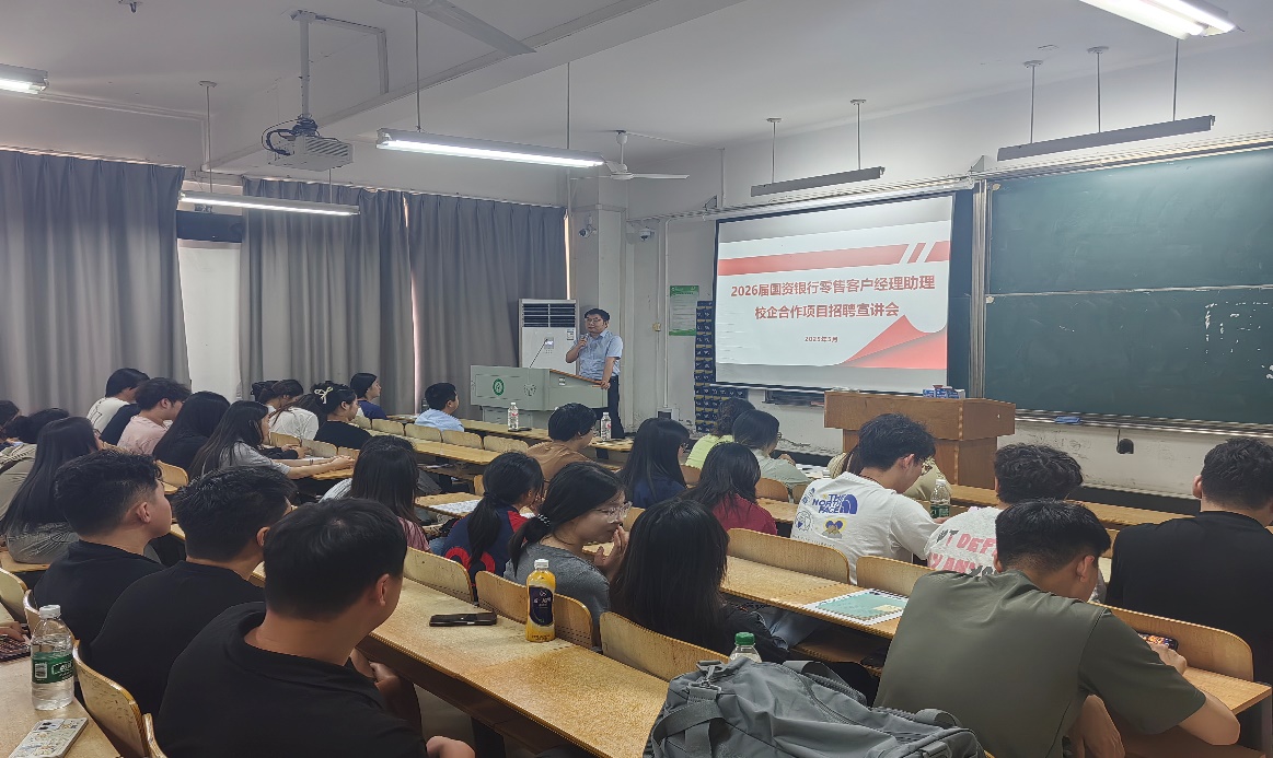 2025年5月29日,湖北银行在综合楼305教室为我院2023级国贸和财富专业学生召开实习招聘宣讲会。