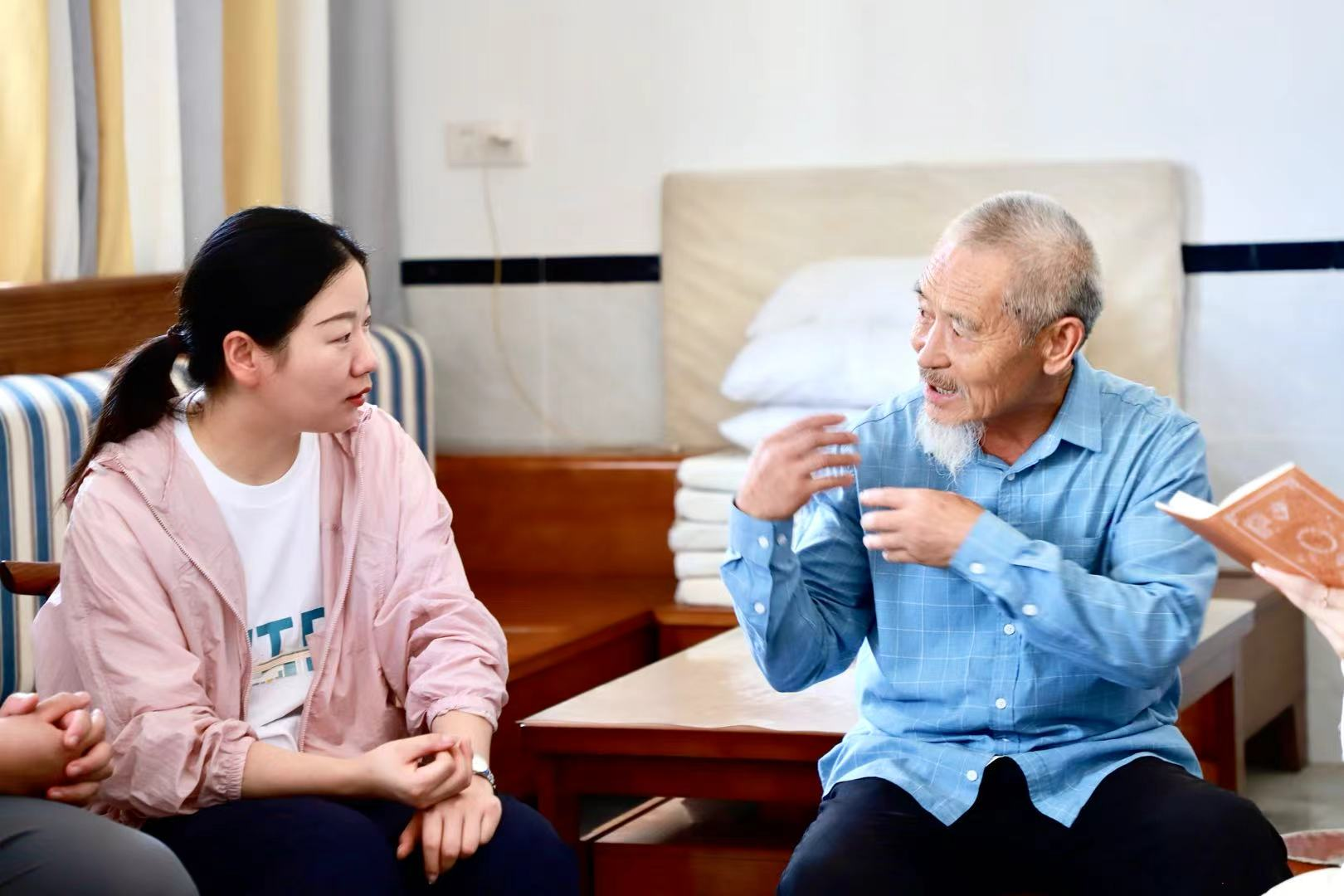 第一站来到蔡师傅家,围坐交谈中,一场关于脐橙产业的对话徐徐展开。蔡师傅细数了脐橙种植销售中遇到的难题,更多次动情提及国家扶农助农政策带来的实惠:“政策春风暖了果园,技术指导到了田间,销售渠道通到了家门口,日子比以前踏实多了!”临别时,蔡师傅热情地给每个人递上自家种的夏橙,清甜的果香里满是淳朴的心意。