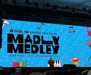 周六晚的MADLY MEDLEY 舞台,氛围真的顶到离谱!蓝发歌手身着正红夹克,墨镜上的镭射光随动作晃出炫目光影,一开口便引爆全场。鼓点沉重得像撞在心上,台下手机荧光海此起彼伏,晃得人鼻尖发烫,晚风里飘着韩牛串的甜香,混着人群的欢呼与合唱声,连呼吸都浸着热烈的烟火气 —— 这才是现场版 K-pop 的终极魅力啊,比耳机循环千百遍都要震撼,直接嗨到不想结束!