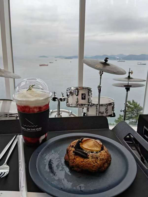 周日一早,揣着还没消散的热汗,坐一小时KTX 冲向三陟的海岸。沿途的田野风光不断掠过车窗,治愈感直接拉满。海上缆车的玻璃舱贴着海面缓缓滑行,舱外防波堤的扭王块排列得整整齐齐,归港的渔船在水面漾开圈圈涟漪,票根上 “6000 韩元” 的字迹还沾着便利店咖啡的淡渍,是旅途中最可爱的小印记。山顶咖啡厅里,点上一杯树莓冰沙,酸甜果香混着绵密奶油不小心沾了嘴角,身后架子鼓的镲片反光中,能瞥见远处跨海步行桥的白色钢索,在阴天里泛着清冷又干净的光,和前一晚的喧闹形成奇妙的反差萌。