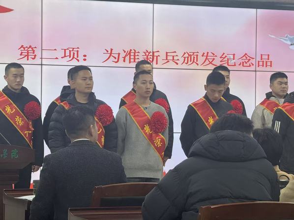 在激昂的誓言声中,全体准新兵庄严宣誓,铮铮誓言响彻会场,彰显了新时代青年投身军营、报效祖国的赤诚之心。